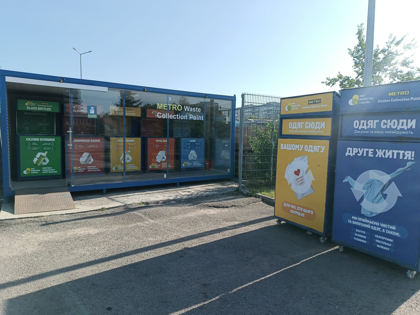 Пункт прийому відходів: алюмінієві банки; скляні пляшки; ПЕТ-пляшки; тетра-пак; макулатура; вживаний одяг.
