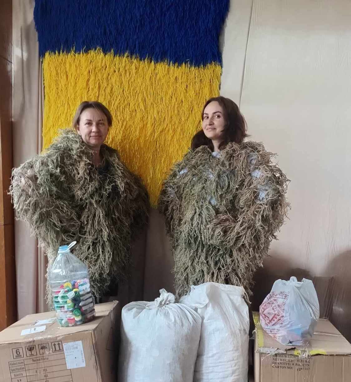 Для захисту українських воїнів від ворожого ока їх потрібно маскувати, тож команда ініціативи плете маскувальні костюми, чугайстри та кавери з вторинної сировини – ниток, розпущених зі старих светрів, шарфів та мішків.