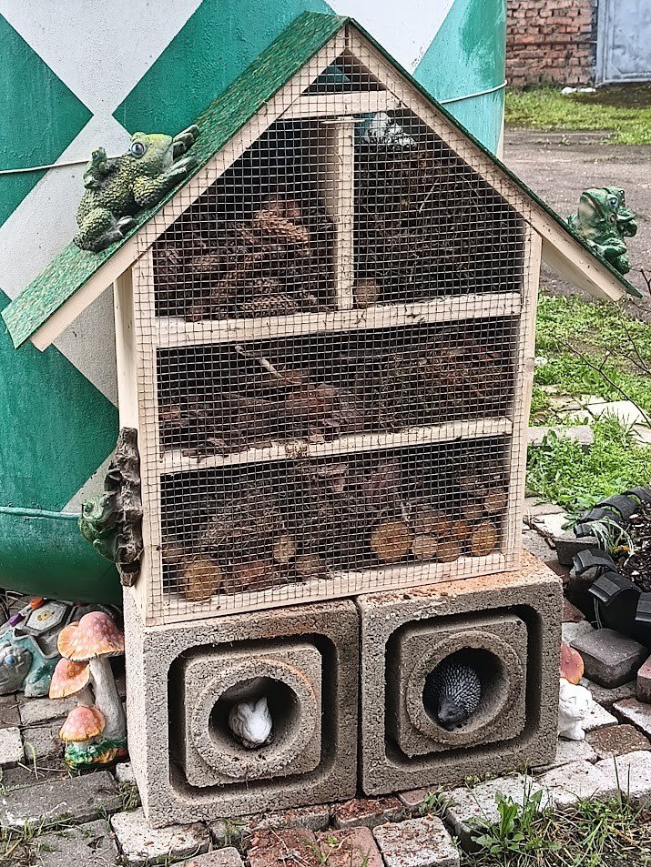 Але в наших силах це змінити, адже екологічні рішення не завжди масштабні й дорогі. Навпаки – іноді достатньо декількох дерев, схованок, щоб представники фауни повернулися у міський простір і відчували себе в безпеці. З чого розпочати зміни? Один із шляхів – не чекати глобальних, а впроваджувати природоорієнтовані рішення (ПОР) на локальному рівні. І мова не лише про великі парки. Іноді найбільш доступним способом змінити міську екосистему на краще є встановлення простих конструкцій, які повертають у місто ключових представників дикої фауни. Це – будиночки для комах, їжаків, годівнички для птахів. Вони є не тільки притулками, але й цілими мікропросторами, які підтримують життя, функції та здатність тварин пристосовуватись до міського середовища.
