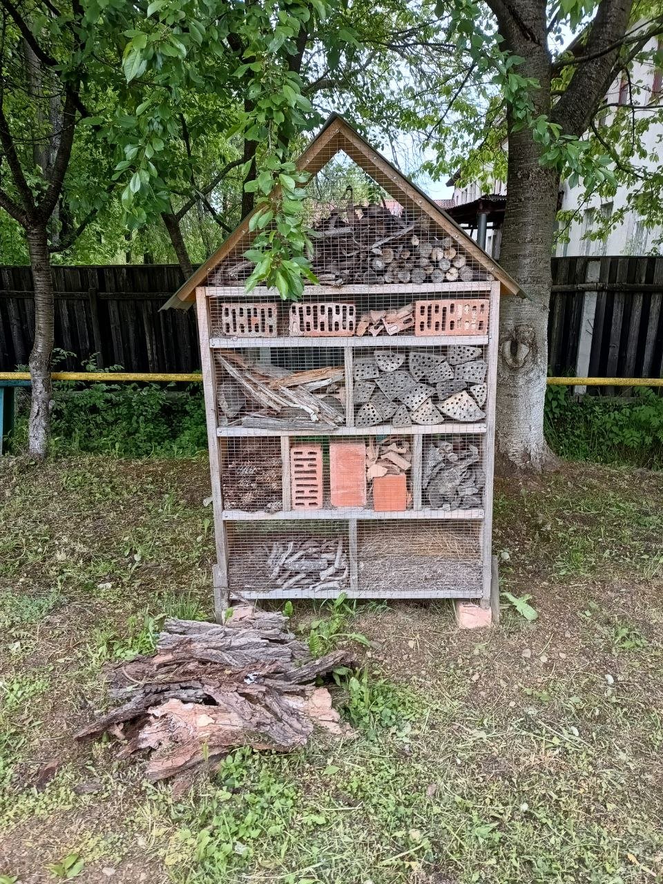 ечним місцем для диких запилювачів, якщо за ним регулярно доглядати. Насамперед важливо стежити за його загальним станом: раз на кілька тижнів оглядати конструкцію: чи не пошкоджена вона, чи не потрапляє всередину волога, чи не з’явилися ознаки плісняви або паразитів. Надмірна сирість може бути згубною для комах, тому краще встановлювати будиночок у місці, захищеному від дощу, або нахиляти його вперед, щоб не затримувалася вода.