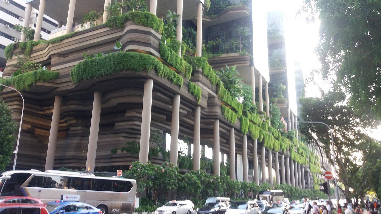 - Сінгапур – один із лідерів зеленого будівництва. Багатоповерхові готелі та офіси інтегрують фітостіни з системами збору дощової води. Marina One – хрестоматійний приклад: його внутрішній двір є справжнім вертикальним парком.