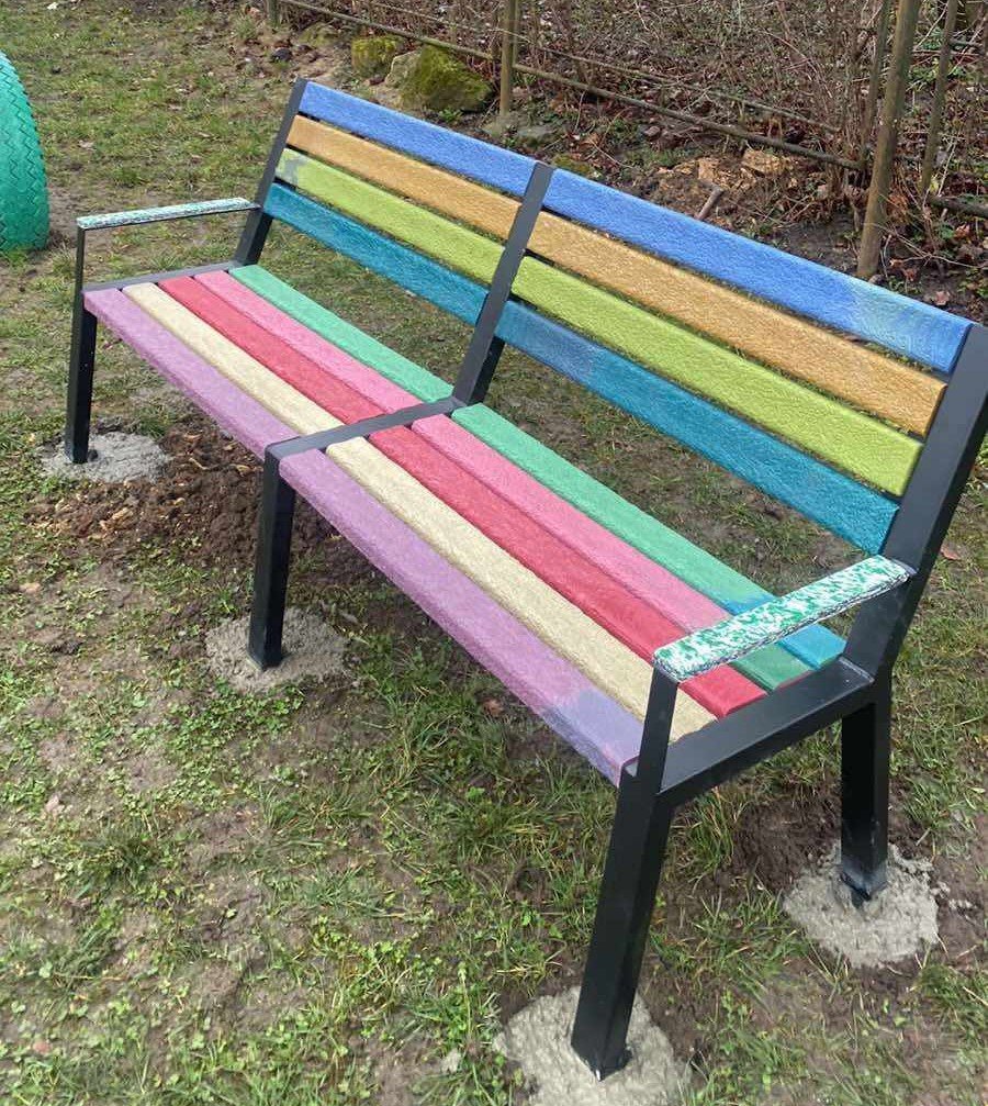 По-третє, переробка дає можливість створювати вироби тривалого користування – кашпо, лавки, меблі, елементи міського дизайну – замість одноразових речей. І що найцікавіше – цей пластик виглядає круто. Наприклад, майстерня EcoREactive виготовляє з перероблених кришечок лавки, стільниці, парканчики, елементи для дитячих майданчиків. Їхній дизайн сучасний, яскравий, а перероблений матеріал – надзвичайно міцний, адже пластик не боїться вологи, сонця та морозу.